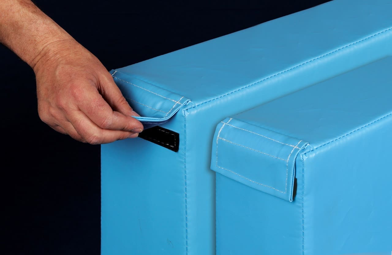 Developed with Kids First Sports Center, these Divider Wall Section moveable walls are great when you need to divide the floor or other carpeted space between classes. Hook and loop fasteners on the bottom sides and flaps means these walls don’t get pushed out of the way easily. Each measures 26″ high x 60″ long x 6″ thick and is available in any of the vinyl colors.