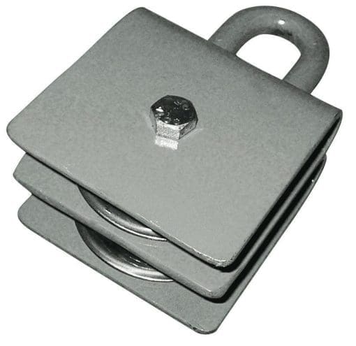 Create or repair your own stationary spotting apparatus with this Double Pulley. All steel construction with a precision bearing sheave; accepts 1/2″ diameter rope (rope must be ordered separately).