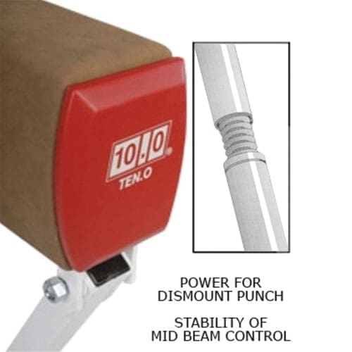 Spring-loaded end brace rod provides power for dismount punch and stability for mid beam control.