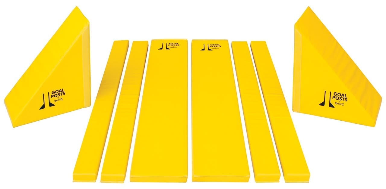 The Goal Post Set is an innovative new training system, developed by Norbert’s in conjunction with Gym Cats Nevada, provides athletes with highly visible yet totally friendly guides to hone directional mobility and alignment skills. Great for coaching (and learning) drills of all types. 72″ Tall so that the entire body stays straight and within the posts. Bright yellow foam-filled Goal Posts set consists of two upright pads and triangular support bases.