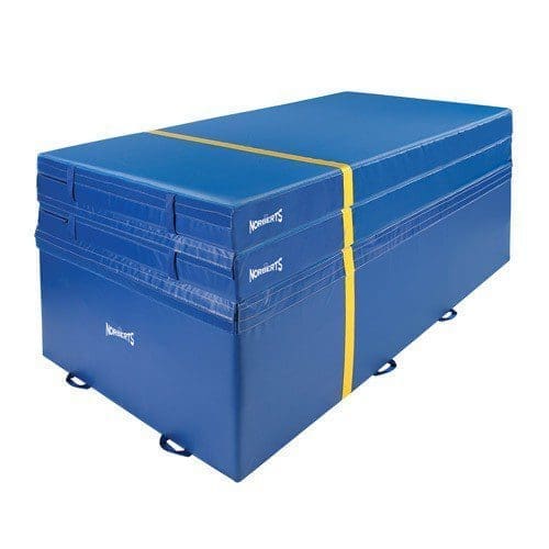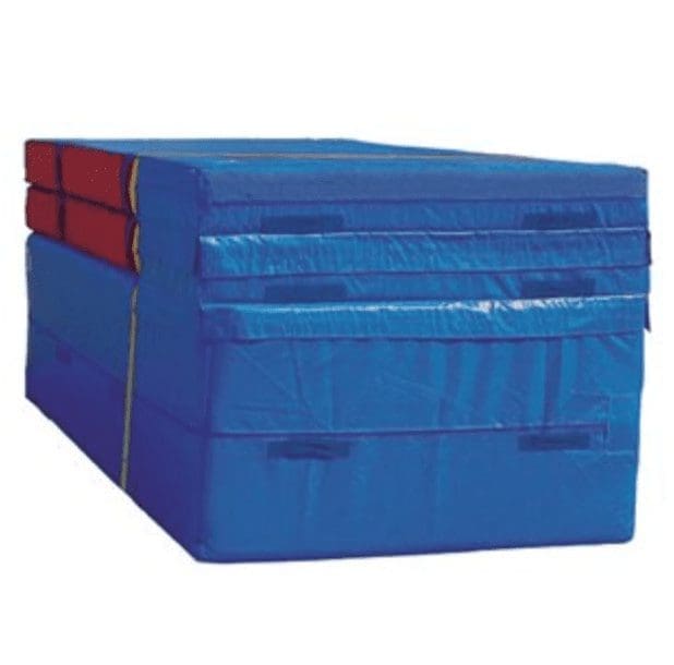 Additionally, 8″ mats secure to the top of pit with hook and loop fasteners. 32″ pit is easy to transport and position, and is filled with prime polyurethane ripple/lattice foam sections. Cover material is tough 18oz solid vinyl fabric (top and bottom) with breather sides. 8″ mats have vinyl tops and forgiving polyurethane fillers for “Flatback” landings.