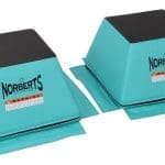 Posts have a 24″ x 24″ square base that tapers to an 18″ x 18″ top surface and are 14″ tall. Black non-slip vinyl on top with turquoise sides. All Ninja Obstacle Course obstacles securely attach to carpet bonded foam with strategically placed hook fastener flaps and strips. These posts have 4” strips of hook fastener permanently attached to the bottom plus 4 flaps with 4″ hook fastener. Covered with 18 oz. coated vinyl, stitched with Dacron thread and filled with polyurethane foam sandwiched between crosslink for optimal footing. Also sold as a set of 4, see model # NP-204.