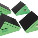 Slanted Steps are 32″L x 24″W x 20″H. Black Diamond Grip non-slip vinyl on the two top angles with Bright Green sides and bottom. All Ninja Obstacle Course obstacles securely attach to carpet bonded foam with strategically placed hook fastener strips. Covered with 18 oz. coated vinyl, stitched with Dacron thread and filled with polyurethane foam sandwiched between crosslink for optimal footing. Slanted steps also sold as a sets of two (NS-202).