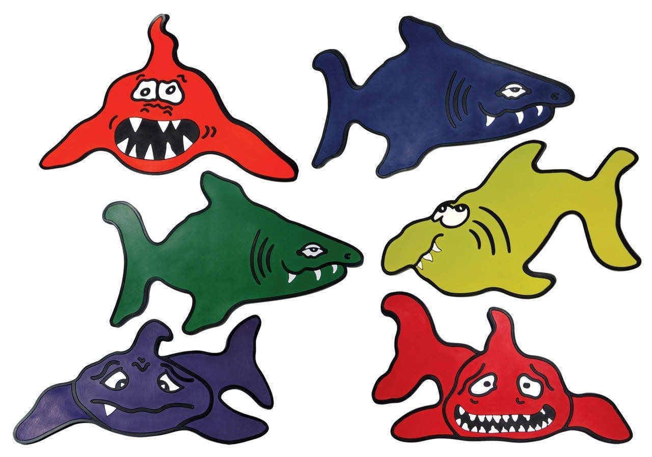 NEW! Set of six 15″ Poly Shark Kids Gym Mats in different colors and with different dispositions!