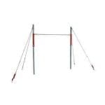 This single bar trainer includes a men’s steel rail . In addition, the women’s rail can be purchased separately for use with the single bar trainer. This set is supplied with all anchoring hardware, plus a pair of pivots for pit mounting. An additional low, flat, connecting bar for floating floors is also available.