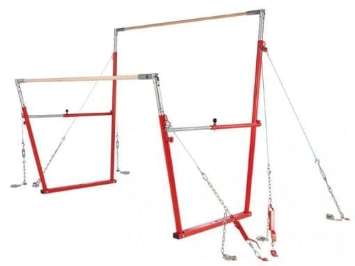 Low bars adjusts from 141.5cm (55 3/4″) to 179cm (70 1/2″) in 5cm (2″) increments