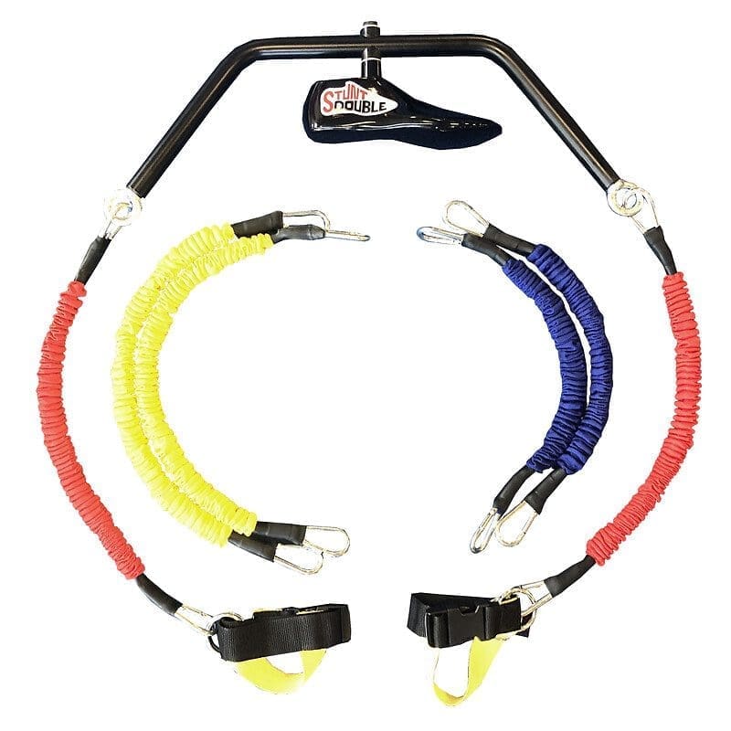 The Stunt Double Deluxe is a personal training device for cheerleader bases. It is designed to develop the essential strength, technique, and confidence needed before working safely with a real-life flyer. The product features a sturdy crossbar with a swiveling foot that mimics the action of a flyer, allowing athletes to simulate the act of being the base in a cheer stunt. The Stunt Double Deluxe also provides strength-building resistance when lifting the device overhead. U.S. Patent 9,308,413