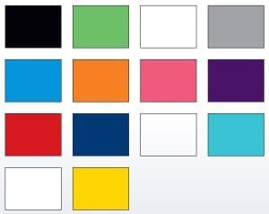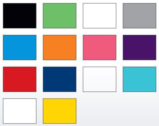 | Color | Royal Blue, Light Blue, Red, Pink, Purple, Green, Light Green, Yellow, Orange, Tan, Grey, Black, White |